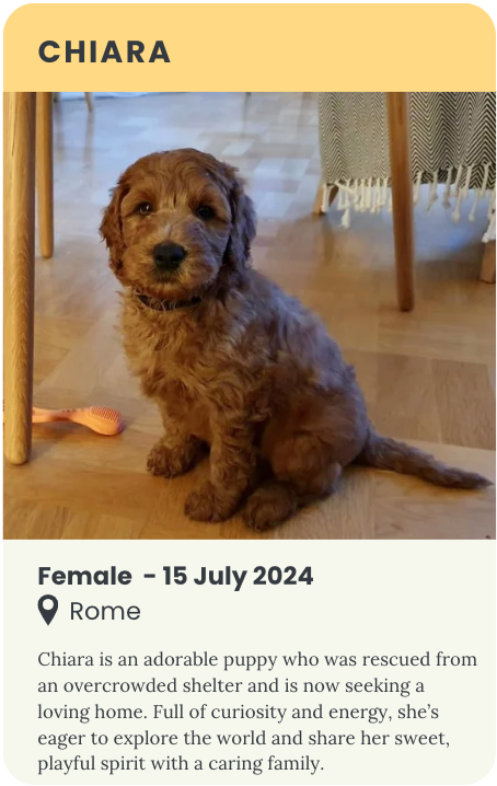 We are an animal shelter based in Rome, committed to rescuing and caring for stray, abandoned, and vulnerable animals. Our goal is to provide them with love, medical attention, and ultimately, a forever home.